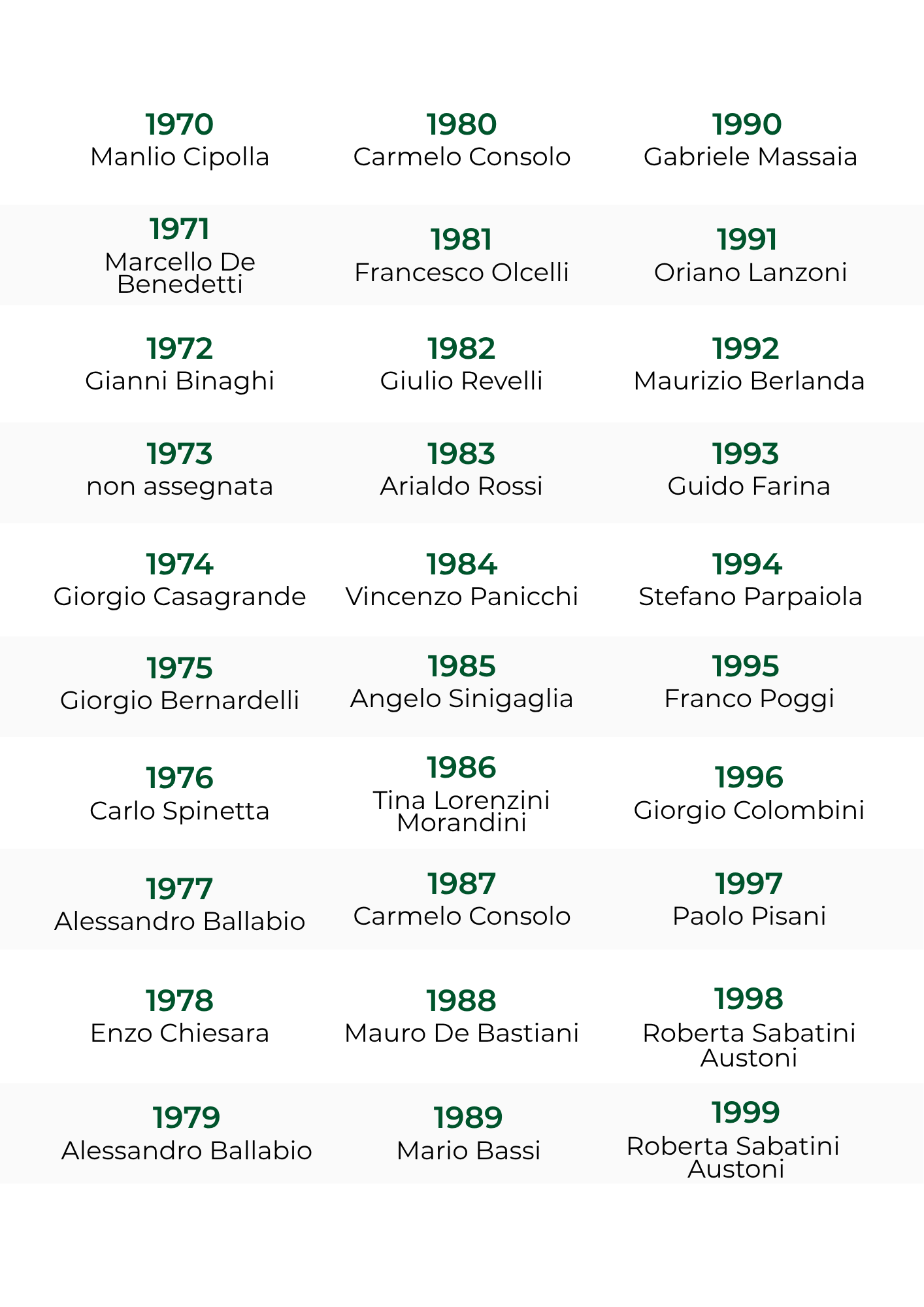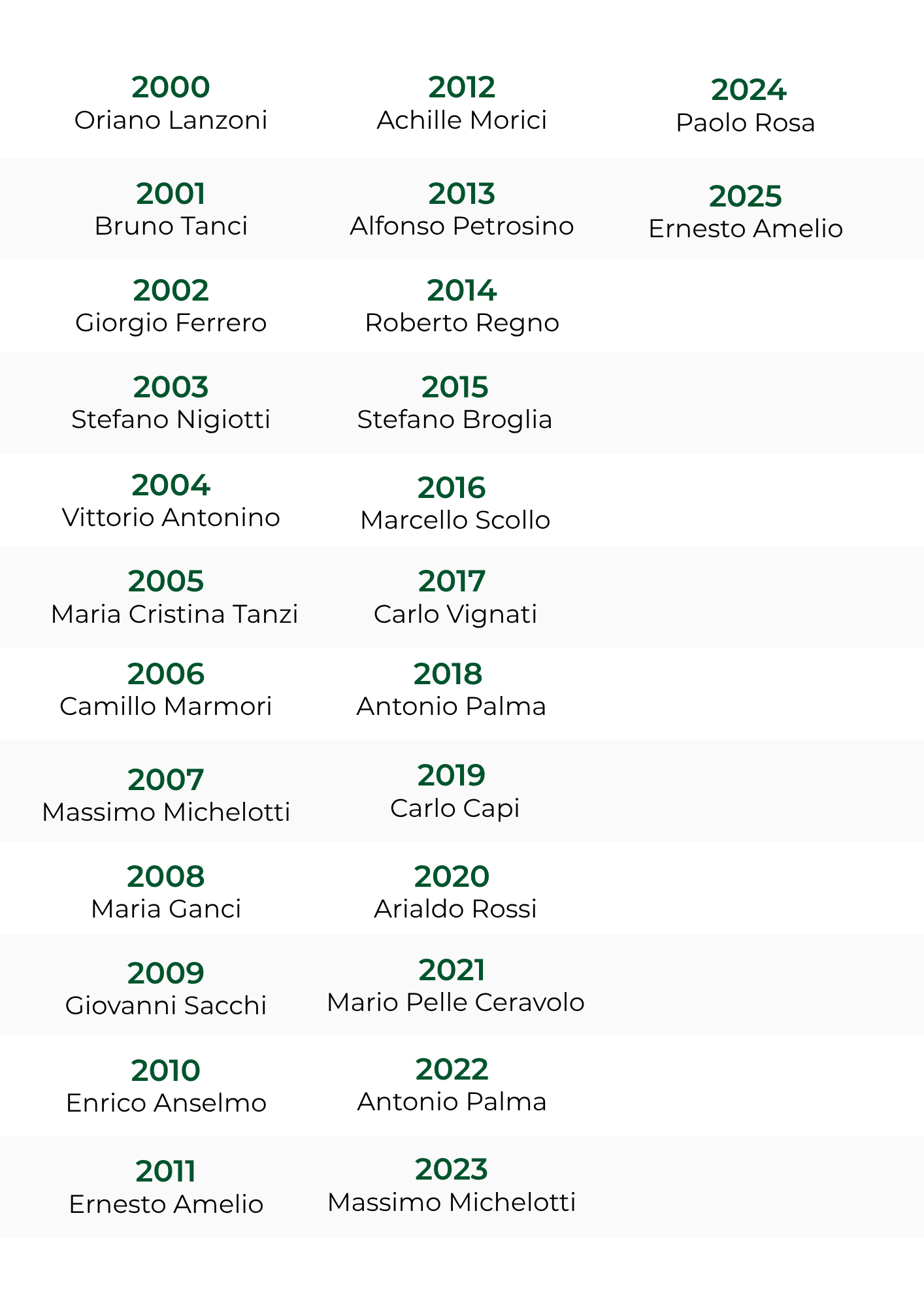 Nel 99, dimessosi dalla carica di Presidente Gianni Capponi , viene nominato ad interim Nicola Gagliani, confermato alla Presidenza durante l'Assemblea dei Soci del 2000 a Cervia, con Mario Benazzi Vice-Presidente e Arialdo Rossi segretario.